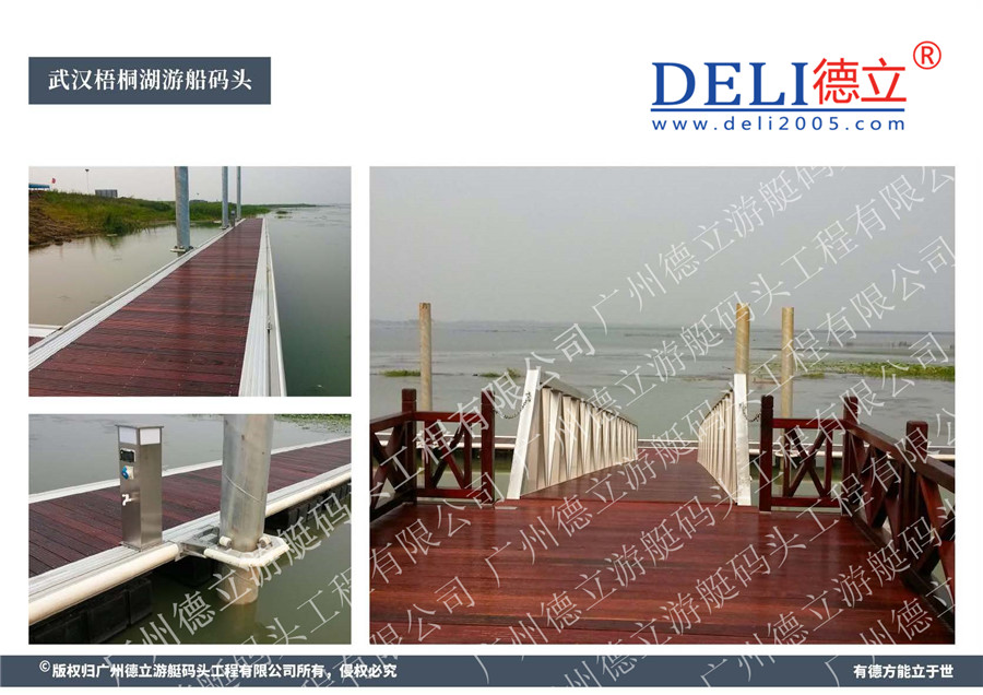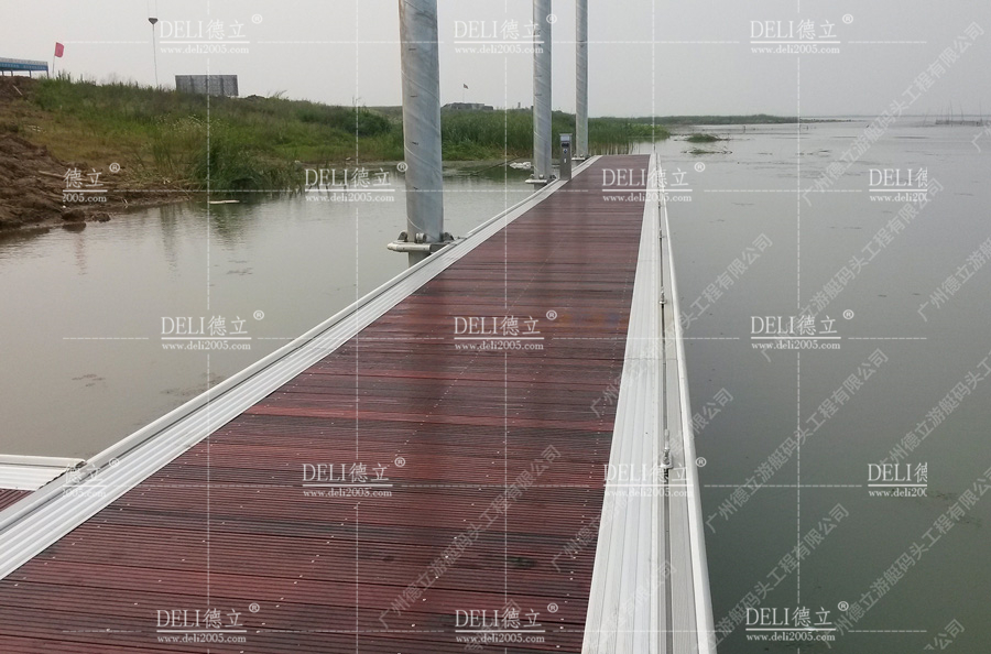 梧桐湖游艇碼頭屬于鋁合金結構游艇碼頭,是由我司負責施工圖設計及施工總承包。碼頭設計呈“豐”型布置,采用鋼管樁定位,接岸通過引橋上下滑動。