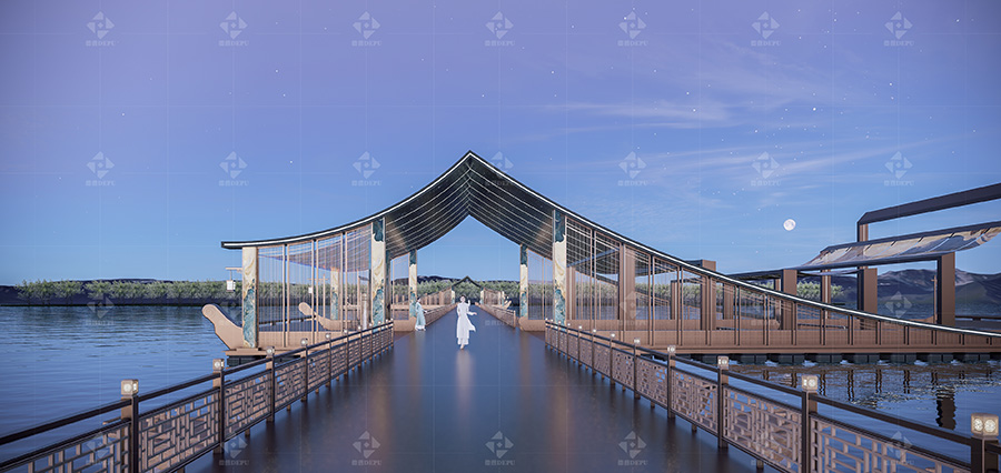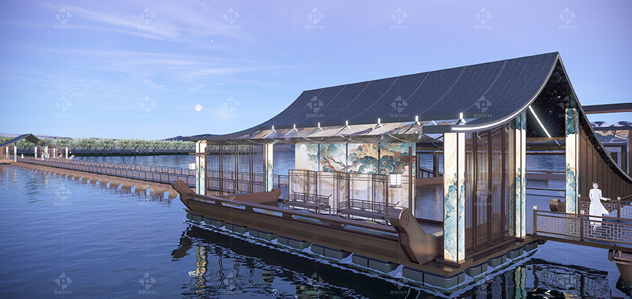 在這樣的畫面中,水上建筑與自然融為一體,展現(xiàn)出一種深深的意境和古典的美感。每一個(gè)細(xì)節(jié)都透露著中國傳統(tǒng)文化的魅力,讓人仿佛置身于一個(gè)充滿詩情畫意的世界中。