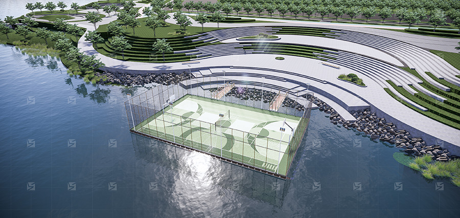 水上漂浮籃球 羽毛球 足球一體場地的設計通??紤]了場地的穩(wěn)定性和安全性。它們采用了專門設計的材料,特殊的浮力材料,以確保場地在水面上穩(wěn)固漂浮。
