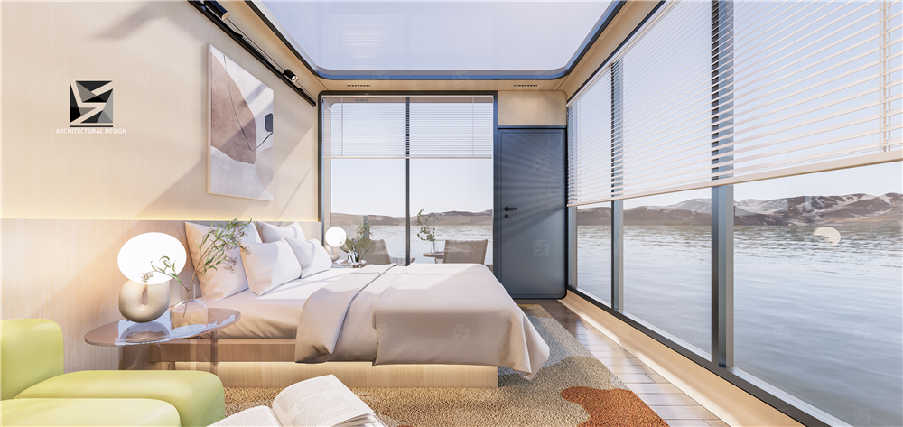 配備了客廳、衛(wèi)生間、大床房、戶外露臺等功能空間。