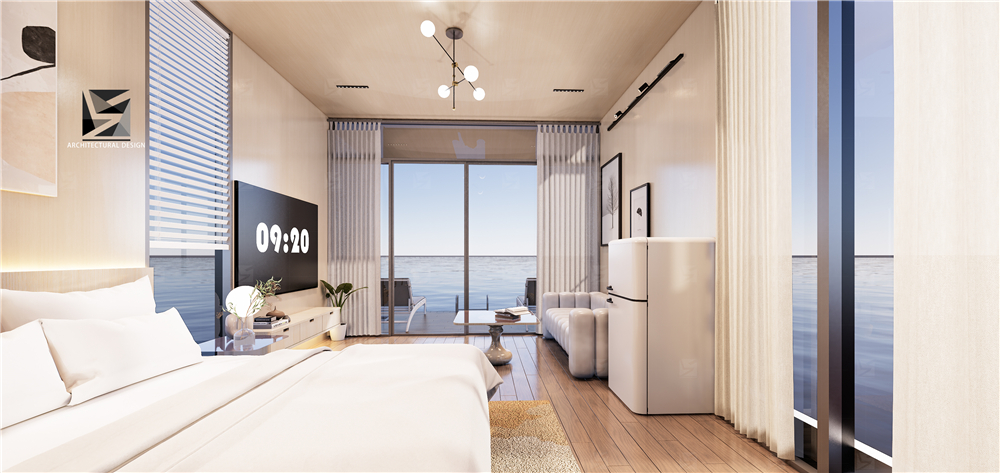 配備了客廳、衛(wèi)生間、大床房、戶外露臺(tái)等功能空間。