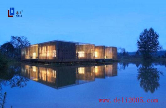 以毛竹為主要原料、融合現(xiàn)代氣息與當?shù)貓@林風味的獨特水上建筑。沒有夸張的造型,也沒有華麗的裝潢,卻充分運用竹子和燈光營造出一簾幽夢的恬適感,入夜之后,躺在湖面上的竹屋,內(nèi)部被燈光暈染得相當美麗,就像是一個充滿希望的小盒子,光是靜靜欣賞就令人感到十分平靜。