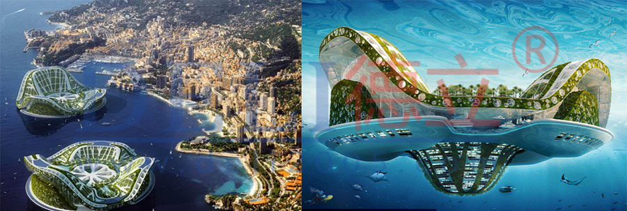 “海上城市”設(shè)計(jì)圖之“海中綠洲”&“海上城市”設(shè)計(jì)圖之“破舊立新”