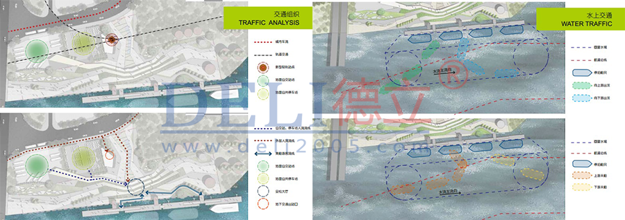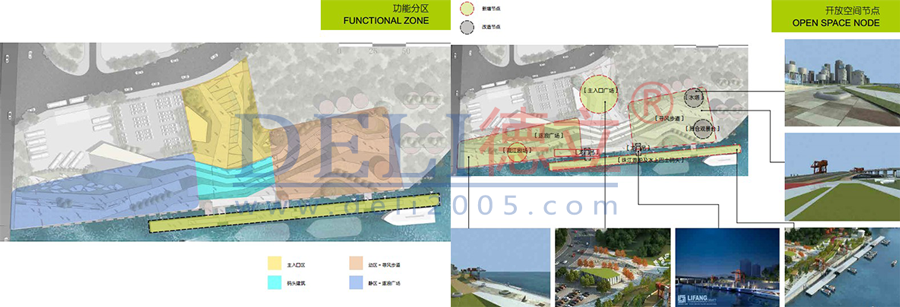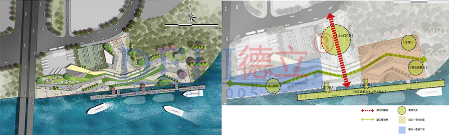 設(shè)計目標(biāo):提供多樣活力的濱水碼頭活動場所、結(jié)合保留建筑創(chuàng)造宜人的休閑空間