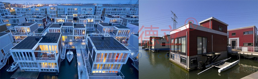 在水上居住需要做相關(guān)實(shí)驗(yàn),尤其是荷蘭這種三分之二的人口居住的地方海拔都低于平均海面的地方。該國已經(jīng)花費(fèi)了數(shù)十億來修建世界上最令人驚奇的堤壩和障礙物以確保不會發(fā)生水災(zāi)。漂浮房屋也能解決海平面上升以及人口密集的大城市房屋短缺的問題。