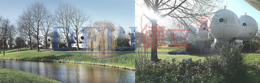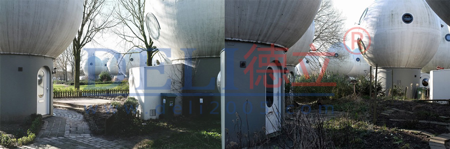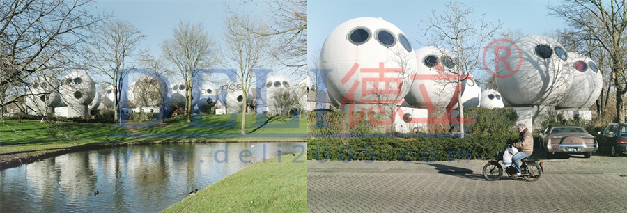 在荷蘭古香古色的Den Bosch小鎮(zhèn),有一片名為Bolwoning的奇怪建筑群。Bolwoning坐落在該地區(qū)傳統(tǒng)的磚房建筑與一條蜿蜒的運(yùn)河之間,由一顆顆蘑菇樣的圓球建筑組成,圓球建筑的上面還分布了一些圓形的窗以及爬藤植物,好似一片失落依舊的外星文明遺跡。