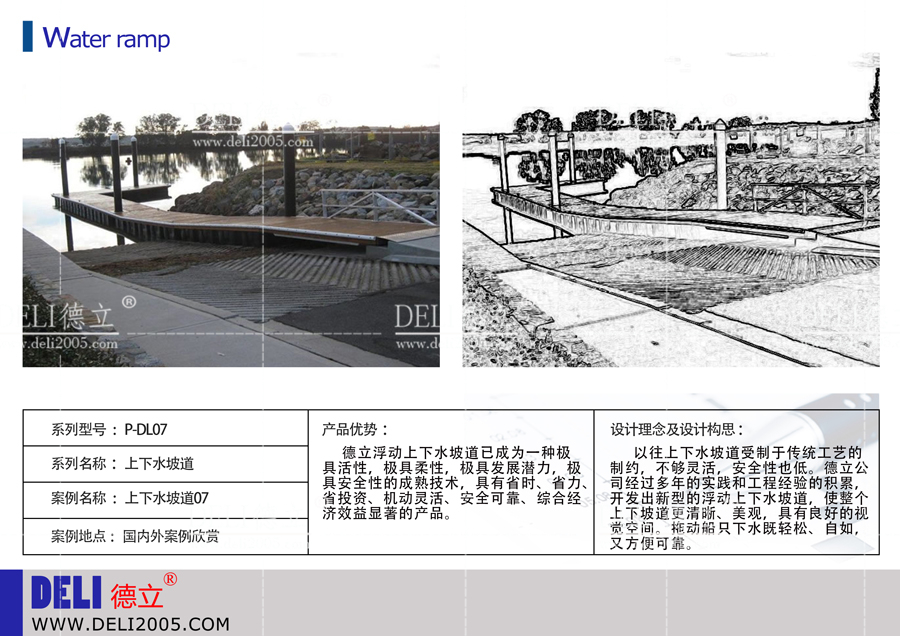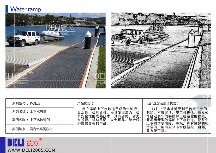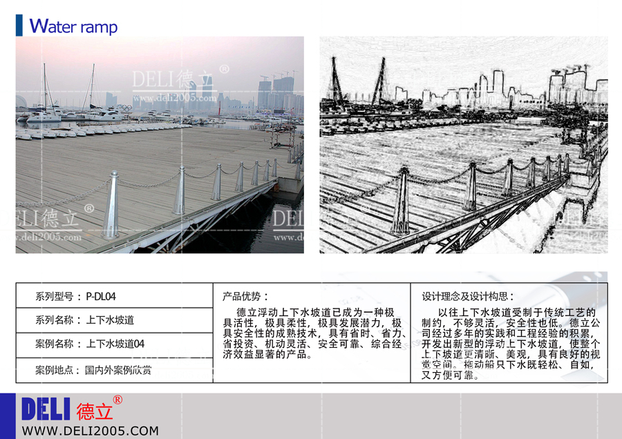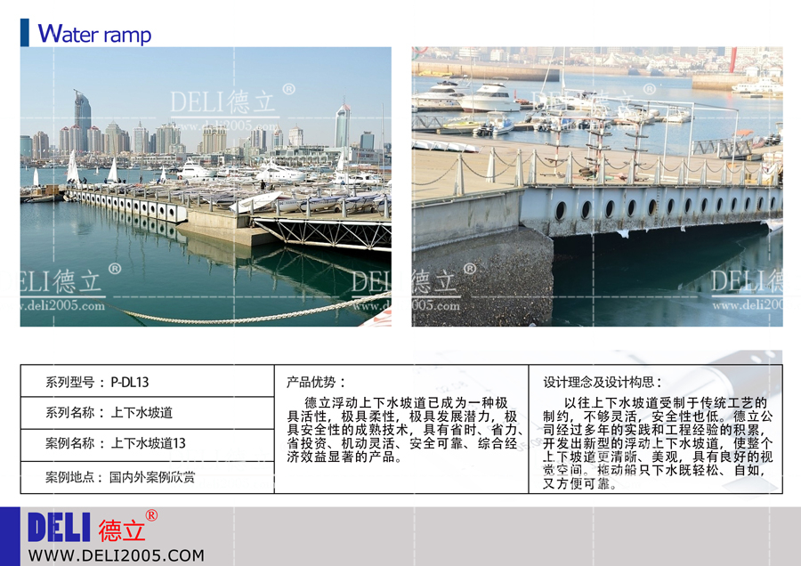 德立公司是以游艇碼頭項(xiàng)目(游艇會、帆船港等)為核心,提供咨詢、規(guī)劃、設(shè)計(jì)、建造、投資、運(yùn)營的綜合服務(wù)商,是行業(yè)內(nèi)的資深企業(yè)。最近德立公司推出了上下水坡道系列,供咨詢。