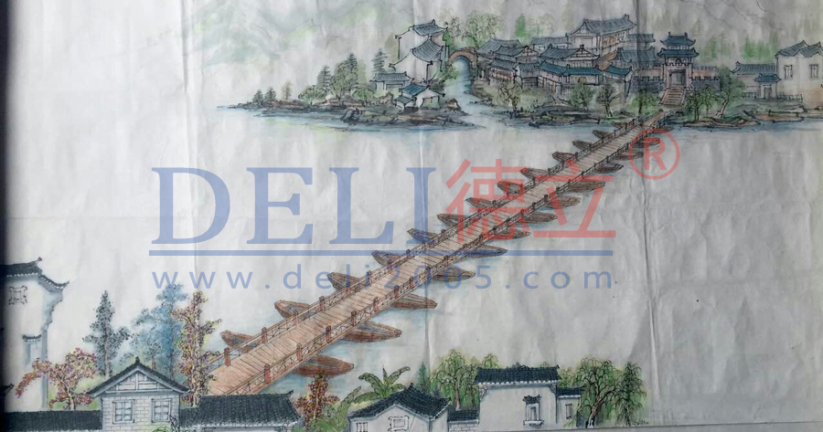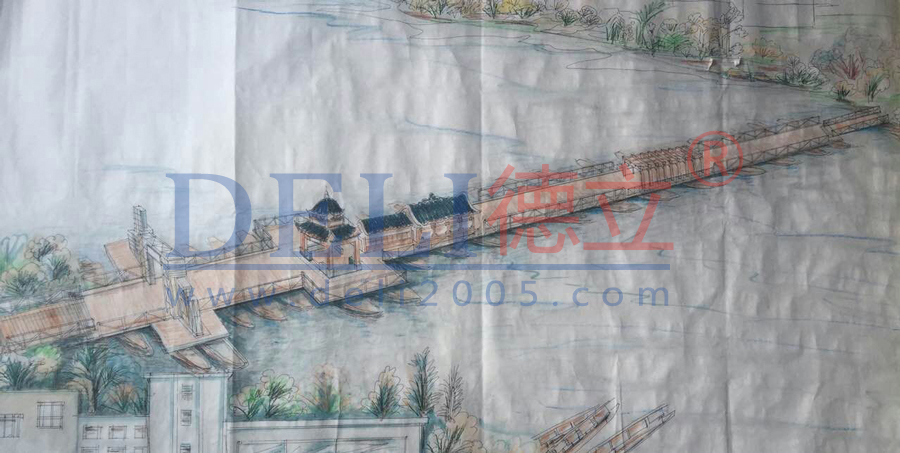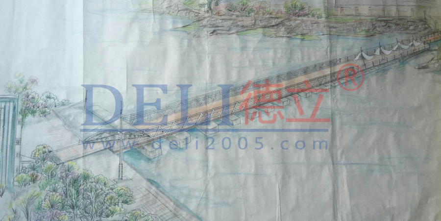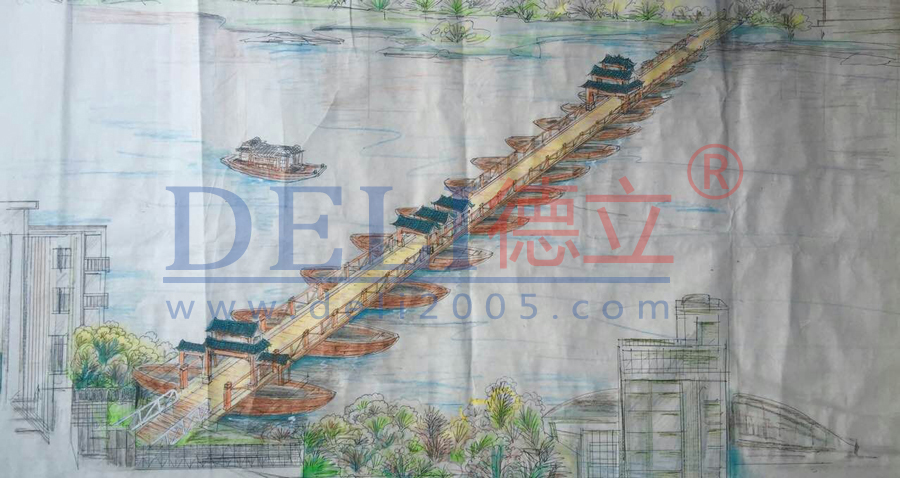 不銹鋼型材仿古浮橋(創(chuàng)意設(shè)計(jì)),方案設(shè)計(jì),地點(diǎn)英德黎溪驛站。