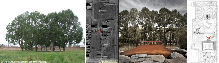 當(dāng)然我們?nèi)サ臅r(shí)候,確實(shí)對(duì)基地還是有一些感觸。我們看到這個(gè)場(chǎng)地覺得太好了,這個(gè)場(chǎng)景里面有一百米的青楊林帶,確實(shí)這個(gè)楊樹的力量比我們?cè)谌A北平原看到的力量大多了,海北這個(gè)地方,青藏高原海拔3100米,那時(shí)候沒有人,沒有樹。有人后才對(duì)應(yīng)有樹,但是又不適合生長(zhǎng),所以死亡率是非常高的。我們了解這個(gè)背景之后,覺得這東西應(yīng)該是被保留的,這是直覺。當(dāng)時(shí)我們看到之后,意識(shí)里邊就是保護(hù)這些樹,至于怎么保護(hù)不知道,這些都是保的理由,為了借而借。所以我們研究了原來(lái)的規(guī)劃,很典型,我們發(fā)現(xiàn)它的格局跟現(xiàn)狀完全不對(duì),因?yàn)樵瓉?lái)是非常松散的,衛(wèi)校的格局留下的印記。我們突發(fā)奇想,能不能做一個(gè)路徑,這個(gè)路徑是專門為了參觀楊樹的路徑。后來(lái)我發(fā)現(xiàn),其實(shí)有些場(chǎng)地當(dāng)中的印記,在選擇的路徑現(xiàn)狀之時(shí)已經(jīng)走出來(lái)了,我們只是一種選擇,后來(lái)也必然有自己的創(chuàng)造。我們發(fā)現(xiàn)原來(lái)的場(chǎng)地中的潛在價(jià)值,是有內(nèi)在結(jié)構(gòu)的,至于看得出來(lái),看不出來(lái)是你設(shè)計(jì)師的事情,但是他的價(jià)值如果被挖掘出來(lái),創(chuàng)造出新的東西可能更加的有力量。這是改造之后的。