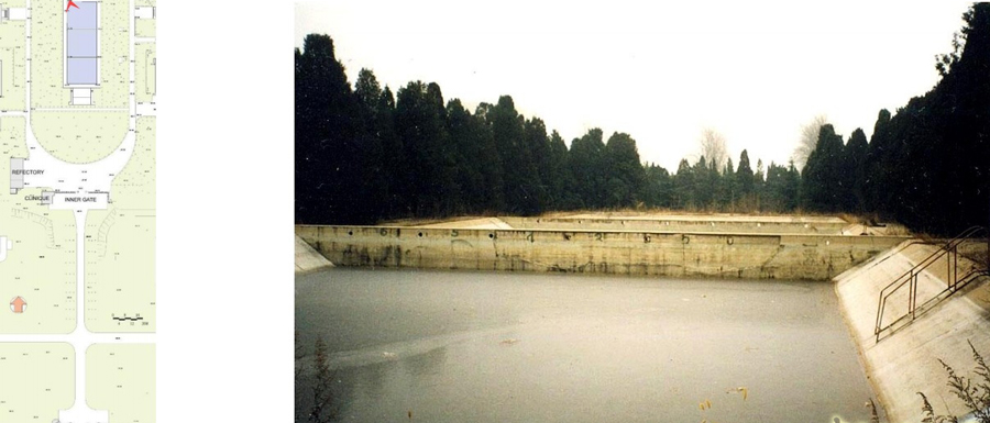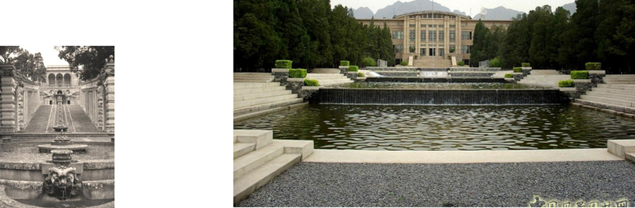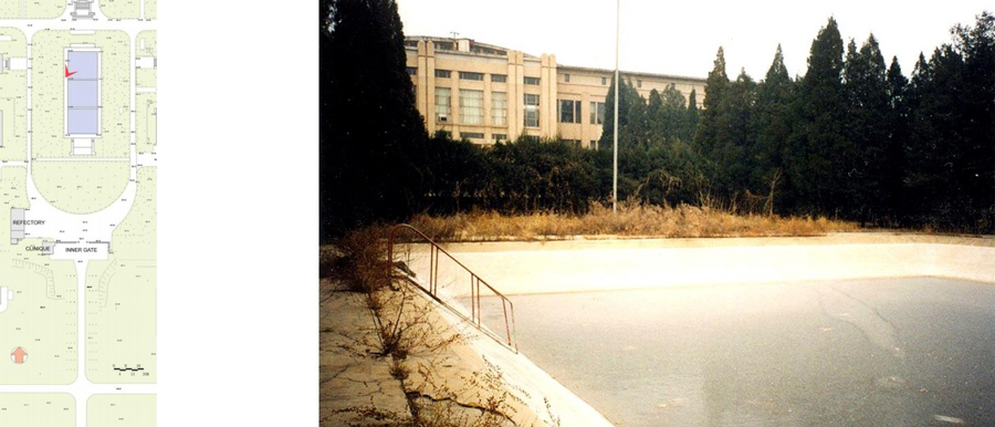 這是一個(gè)獨(dú)立設(shè)計(jì)的案例,地點(diǎn)在昌平,十三陵邊上,人稱十四陵的位置,從八達(dá)嶺的輔路一直到這邊。我們可以看到在接手這些設(shè)計(jì)的時(shí)候,這些樹長(zhǎng)出來(lái)了,原因是因?yàn)楫?dāng)時(shí)文革沒有管,以后就沒法再管了,使得蘇聯(lián)式的綠衣變成了綠場(chǎng)。當(dāng)時(shí)說(shuō)一定要把它去掉,但是我的理由是保護(hù)它。我們可以看到中間有一個(gè)冷卻池,三個(gè)是死水,4米高。當(dāng)時(shí)我提交的方案,目的是為了保留這些樹,所以當(dāng)時(shí)沒有考慮到水池,認(rèn)為水池簡(jiǎn)單的包一下就可以了。不過(guò)之后有了一個(gè)很深的感觸,就是當(dāng)你不了解場(chǎng)地結(jié)構(gòu)的時(shí)候,很難發(fā)現(xiàn)它最大的價(jià)值。當(dāng)時(shí)畫圖的時(shí)候去勘探現(xiàn)場(chǎng),發(fā)現(xiàn)這個(gè)是典型的,非常非常典型的西方古典園林。當(dāng)你知道延展性是它最重要一點(diǎn)的時(shí)候,你發(fā)現(xiàn)設(shè)計(jì)忽略了這最重要的一點(diǎn),當(dāng)我知道犯錯(cuò)之后就調(diào)整了設(shè)計(jì)。這是規(guī)劃里面典型的蘇聯(lián)式,這是開放性,首先要保證它的延展性,這個(gè)的力量是最大的,這種結(jié)構(gòu)會(huì)被激發(fā)出來(lái)。當(dāng)時(shí)因?yàn)楸粯淦帘蔚袅耍瑢?dǎo)致我把這些池子砍掉了,結(jié)果水量由百分之百縮減到了25%,縮減了四分之三,原來(lái)三個(gè)池子變成了一個(gè)池子。