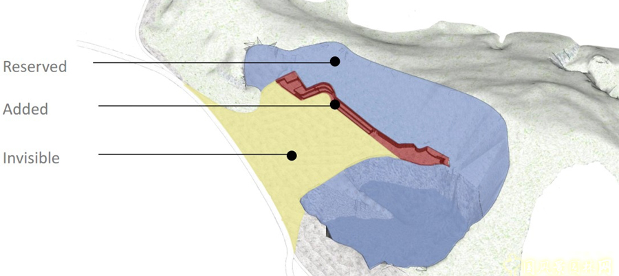 我們面臨的一個(gè)問(wèn)題就是,山體大量的斜面是非常危險(xiǎn)的,應(yīng)該如何去處理,還有平臺(tái)區(qū),有非常不好處理的特別平臺(tái)。這是石山,底下都是石頭,這里面為什么要堆一個(gè)土山,就是因?yàn)檫@個(gè)原因。當(dāng)時(shí)事務(wù)所的基本的概念是不要碰它,保持這樣,但是我去完現(xiàn)場(chǎng)之后,看法有所改變。中國(guó)人有一個(gè)特點(diǎn),一定要是跟山水融為一體的。所以不管通過(guò)什么方式,我必須得下去。在這兒看特別像一個(gè)洞,就在這兒做了一個(gè)山洞,這個(gè)山洞連是接?xùn)|西礦的一個(gè)通道,是保證安全必須要做的事情。在這一側(cè)是非常好的,最后看著像手術(shù)刀,通過(guò)坡道的一側(cè),下去以后經(jīng)過(guò)一線天,太危險(xiǎn)了。