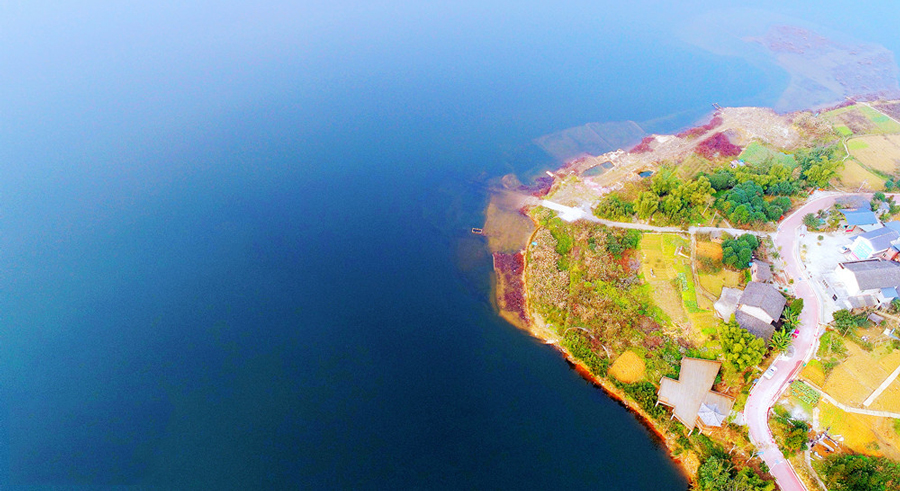 板遼湖環(huán)繞群山,構(gòu)成一幅美麗畫(huà)卷。新華網(wǎng)發(fā)(資料圖)