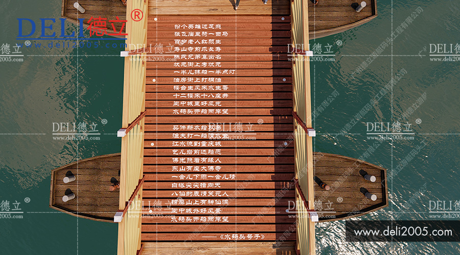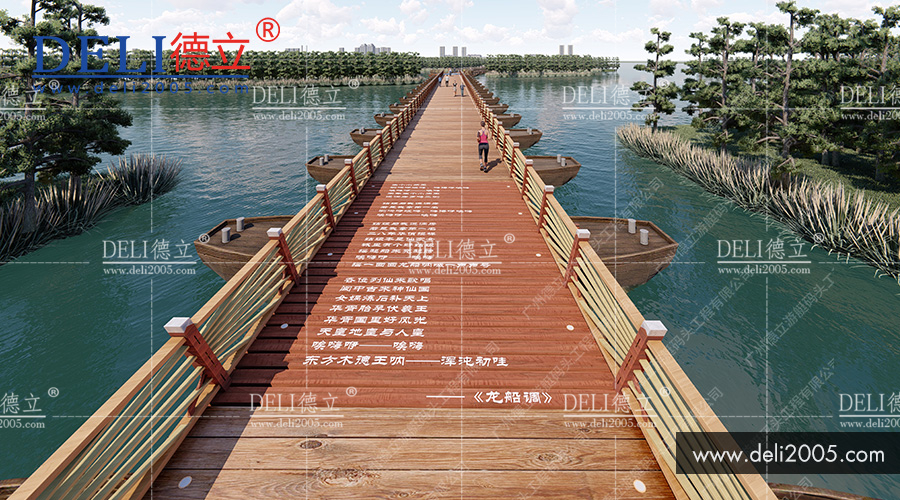 2018年,由廣州德立集團規(guī)劃設計的《印象系列之南充嘉陵江景觀浮橋》一經(jīng)問世,便獲得當?shù)卣嘘P單位的一致好評!是南充嘉陵江景觀浮橋的施工藍圖!其巧妙結(jié)合船工號子元素,為浮橋注入了靈魂!