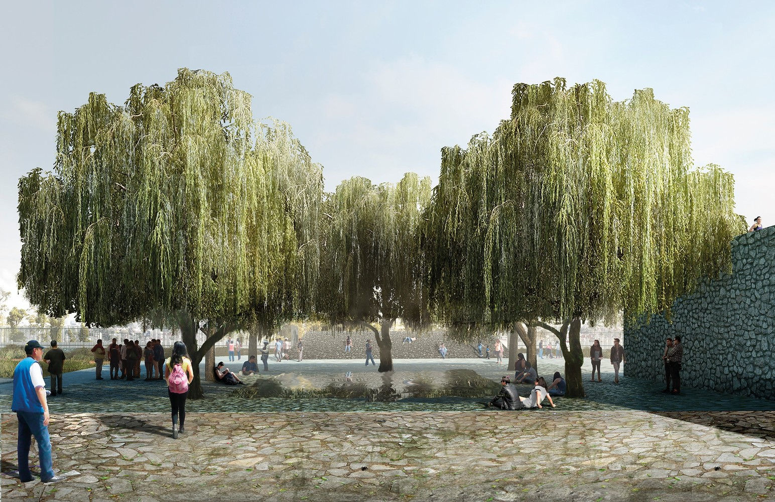 一個在墨西哥的保水及處理水的公共綜合體。方案位于墨西哥城的一片貧窮地區(qū)內(nèi),合并的洪水流域和區(qū)域內(nèi)公共設施依流水的走勢建造。評委受方案的“精細的提出嚴峻問題,有真正的影響力”觸動。