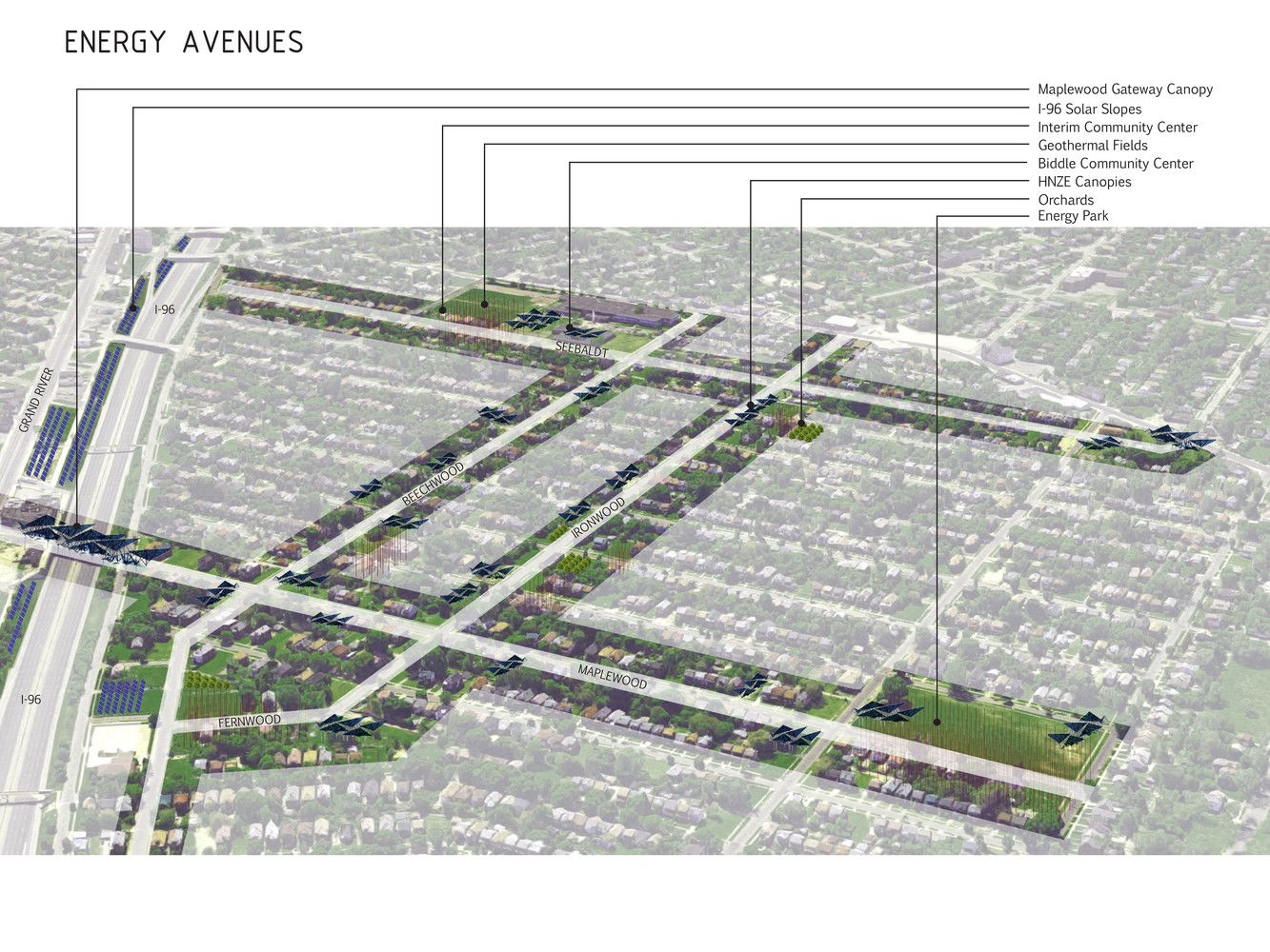 一個由社區(qū)推動的社區(qū)規(guī)劃方案,將美國底特律的廢棄土地重新規(guī)劃為集體基礎設施的空間,包括食物、能源和市民參與。這個設計方案能在當?shù)?,讓鄰里通過微型基礎設施,推動能源自動化,評委組評論該方案為“由社區(qū)發(fā)起的方案”。
