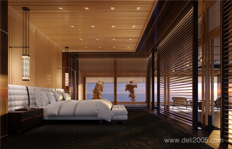 (Aqua內部的一間臥室表現(xiàn)出極簡主義的美感)