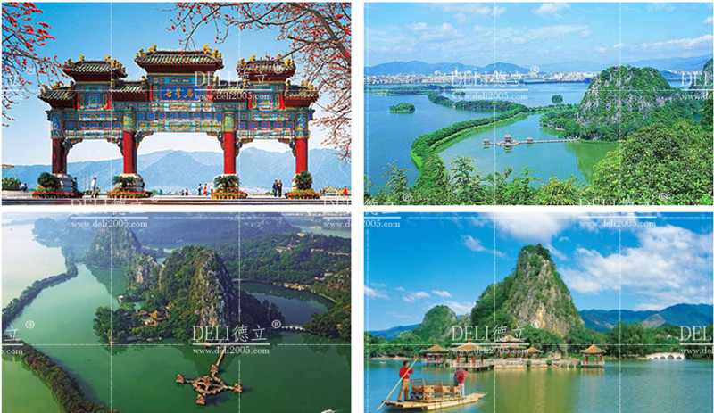 D:利用石室?guī)r、天柱巖、蟾蜍巖、仙掌巖、象崗以及玉屏巖閬風巖犀牛崗的西南側(cè)來營造山體燈光效果。